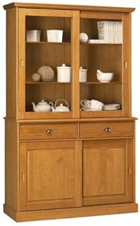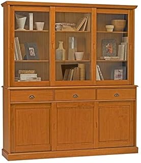 ACTUAL DIFFUSION Windsor Vaisselier-Bibliothèque Pin Miel 4 Portes Coulissantes, 42x120,8x199 cm