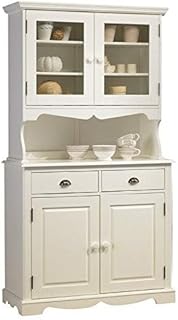 ACTUAL DIFFUSION Windsor Buffet Vaisselier Blanc 4 Portes de Style Anglais, Pin, 42x101x186 cm