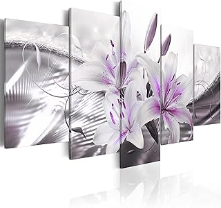 B&D XXL murando Impression sur Toile intissee 100x50 cm 5 Parties Tableau Tableaux Decoration Murale Photo Image Artistique Photographie Graphique Fleurs Lilie Abstrait b-A-0251-b-o