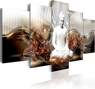 murando Impression sur Toile intissee 100x50 cm 5 Parties Tableau Tableaux Decoration Murale Photo Image Artistique Photographie Graphique Buddha Abstrait Fleurs lis h-C-0043-b-n
