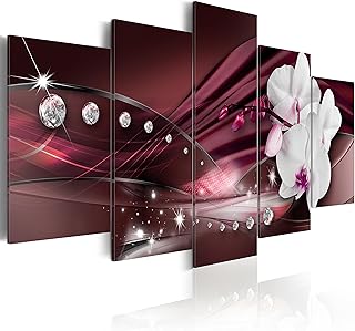 B&D XXL murando Impression sur Toile intissee 100x50 cm 5 Parties Tableau Tableaux Decoration Murale Photo Image Artistique Photographie Graphique orchidée Abstrait éclat Bijoux Fleurs b-A-0097-b-o