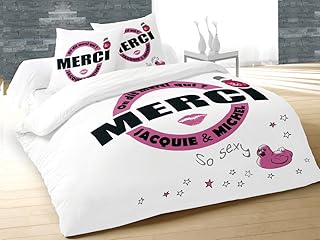 JACQUIE & MICHEL 635538 Housse de couette Motif On dit merci qui? Polyester Blanc 220 x 240 cm