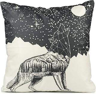 Puccybell Housse de coussin Motif Loup Animal Impression numérique Coussin décoratif Housse de coussin 45x45cm KB005 (45x45cm Noir Blanc Motif 7)