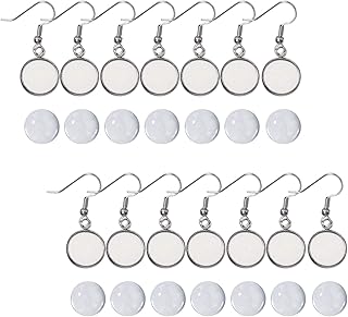 UNICRAFTALE 40 Ensembles de Boucle d'oreille en Acier Inoxydable Conclusions 12mm Boucle d'oreille Crochets avec Verre Transparent Cabochon Boucle d'oreille Paramètres pour Fabrication de Bijoux