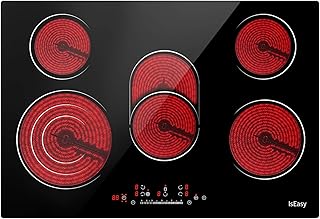Plaque de cuisson en Vitrocéramique Encastrable Table de cuisson Vitrocéramique 5 foyers en verre Table de cuisson Capteur Contrôles Tactiles Plaque Minuterie Vitrocéramique 5 feux cuisson (8600W)