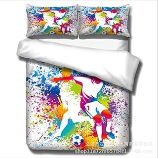 KIACIYA Housse de Couette Football 220X240 cm 3D Motif Parure de Lit Football Housse de Couette 1-2 Personne Enfant et 3 Pièces Taies d'oreiller Football Ensemble de Literie Homme Femme (5,135x200)