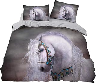 BATTE Parure de lit en microfibre avec housse de couette et taies d'oreiller Motif cheval 220 x 240 cm