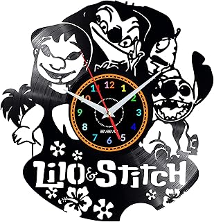 EVEVO LILO and Stitch Disque Vlnyle Disques Vinyliques Horloges Murales Vinyle Record Mur l'horloge Créatif Classique Accueil Décor Musical Fait Main Temps l'horloge LILO and Stitch
