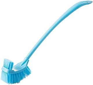 Alivier Portable Brosse WC plastique Manche long Bord d'angle de salle de bain Cuvette WC Scrub double face Brosse de nettoyage, bleu, 46x5.5x8cm