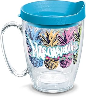 Tervis Margaritaville 1313046 Gobelet isotherme en tritan avec couvercle turquoise Motif ananas Transparent