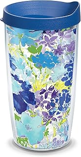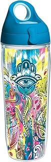 Tervis 1239813 Hamsa Gobelet isotherme avec couvercle turquoise Tritan Motif floral Transparent