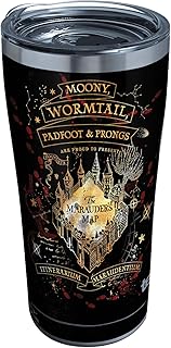 Tervis Harry Potter Gobelet isotherme en acier inoxydable avec couvercle transparent et noir, 590 ml, argent