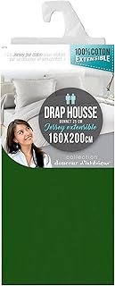 DRAP HOUSSE 2 PERSONNES 160 x 200 CM JERSEY UNI JERSY VERT SAPIN