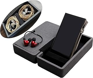 MITRE Étui coque de transport pour casque de lecteur de musique dans un étui rigide pour 2 écouteurs IEM + 1 lecteur audio numérique Boîte en cuir PU Sac de rangement couverture (Noir clair)