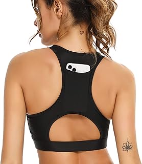 Aibrou Soutien Gorge Sport Femme sans Armature Soutiens-Gorge Yoga Bon Maintien Lingerie Brassière Rembourré Confortable avec Coussinets Amovibles et Poche au Dos